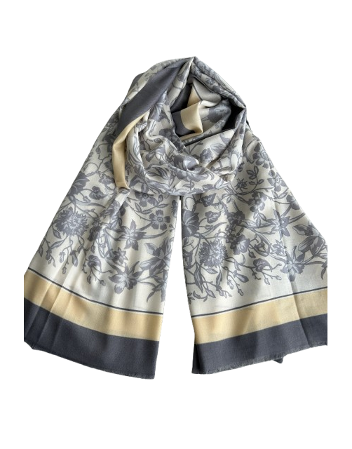 L563 Margo rašto pilkai gelsvas šalikas